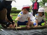 ちょうちんや輪飾りを作って、おみこしに飾りを付けたり、ゲームの準備をしたりしました。ゲームの内容は、つり、鉄砲、的当て、輪投げ、段ボール積みの5つです。祭り当日は、みんなでみこしを担いで回り、その後ゲームをしました。お店屋さん、お客さん、どちらの係も交代で行い、楽しむことができました。