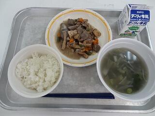 麦ご飯 牛乳 里いものそぼろ煮 みぞれ汁