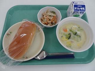 チーズパン 牛乳 野菜たっぷりクリームシチュー れんこんサラダ
