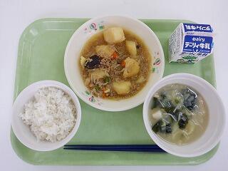 麦ご飯 高野豆腐の卵とじ 魚そうめん汁 牛乳