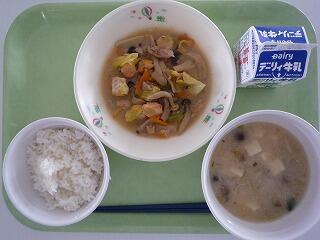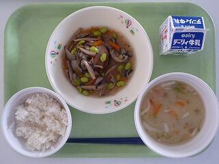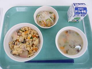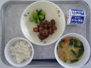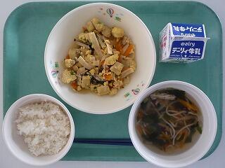 麦ご飯 高野豆腐の卵とじ 魚そうめん汁 牛乳