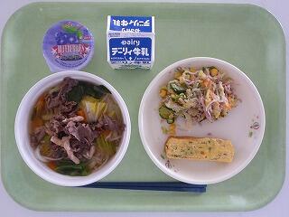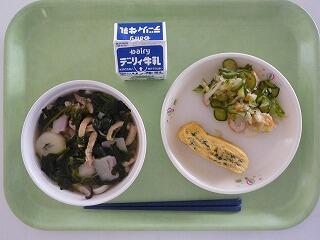 ちからうどん 千草焼き 野菜の梅肉和え 牛乳