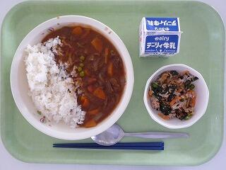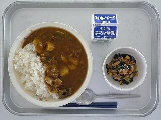 ポークカレー ごぼうサラダ いちごクレープ 牛乳