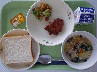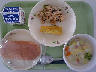 ミルクパン 鶏とナッツの炒め物 ミネストローネ 牛乳