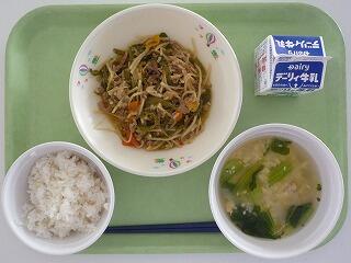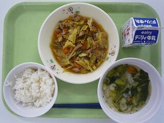 麦ご飯 回鍋肉 中華スープ 牛乳