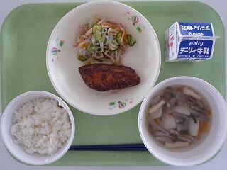 麦ご飯 県産カンパチのフライ 春雨サラダ けんちん汁 牛乳