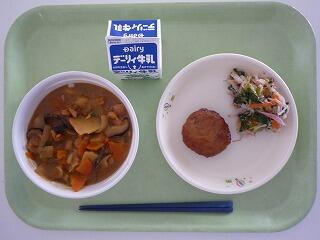 麦ご飯 かぼちゃフライ チキンサラダ 白菜スープ 牛乳