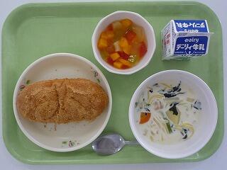 揚げパン パスタスープ フルーツカクテル 牛乳