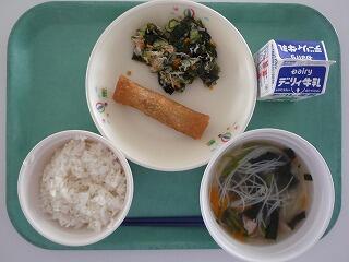 麦ご飯 春巻き ゆでブロッコリー 中華団子スープ 牛乳