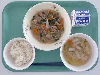 麦ご飯 みそ豚じゃが のっぺい汁 牛乳