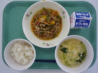 麦ご飯 チンジャオロース 中華スープ 牛乳