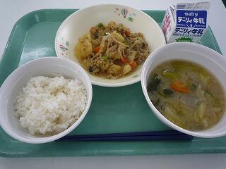 麦ご飯 豚の生姜炒め さつまいものみそ汁 牛乳
