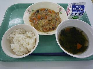 麦ご飯 八宝菜 ワンタンスープ 牛乳