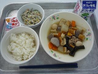 ひむか炊き込みご飯 里いものそぼろ煮 みぞれ汁 牛乳