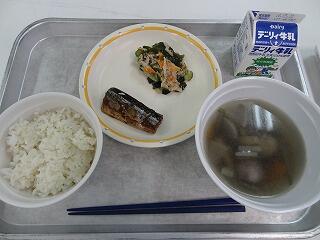 麦ご飯 牛乳 さんま梅煮 わかめサラダ けんちん汁