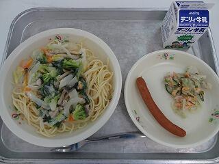 クリームスパゲティ 牛乳 ウインナー コールスローサラダ