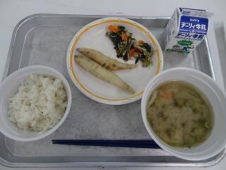 麦ご飯 牛乳 ししゃもフリッター 小松菜のソテー さつま汁
