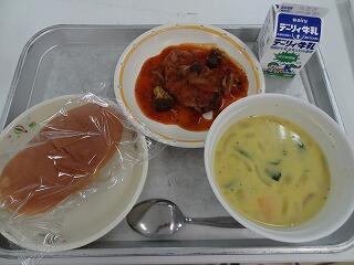 ミルクパン 牛乳 ハンバーグトマトソース パンプキンポタージュ