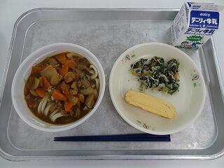 カレーうどん 牛乳 厚焼き卵 グリーンサラダ
