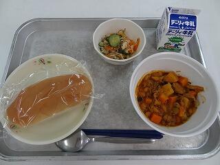 ドライカレー 牛乳 ハムのマリネサラダ 白菜スープ