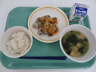 麦ご飯 牛乳 いわし生姜煮 キャベツの酢の物 豚汁