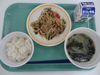 麦ご飯 牛乳 豚のしょうが炒め 春雨スープ