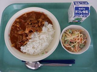 麦ご飯 豚肉の柳川煮 青じそサラダ 牛乳