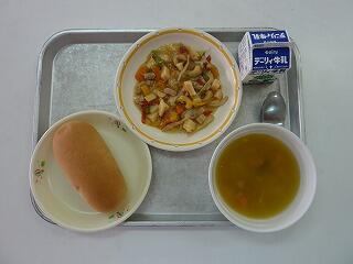 安比ルパン かぼちゃとコーンのクリームスープ ごぼうサラダ 牛乳