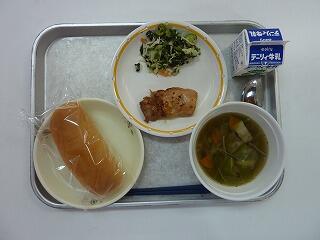 ミルクパン 鶏のオレンジ焼き グリーンサラダ 野菜スープ