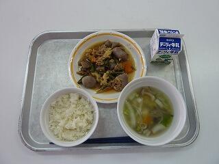 麦ご飯 筑前煮 ほうれん草のみそ汁 牛乳