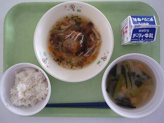五目うどん 肉だんご 茎わかめの酢の物 牛乳