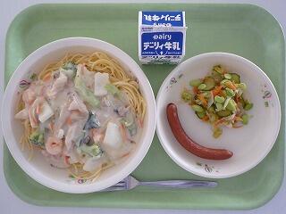 クリームスパゲティ ウインナー 青豆サラダ 牛乳