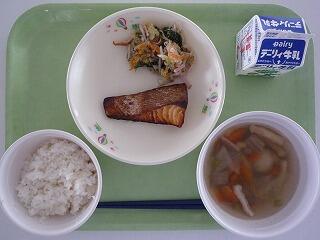 麦ご飯 県産カンパチの照り焼き ごま和え けんちん汁 牛乳
