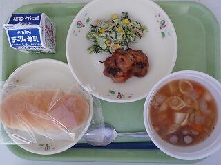 ミルクパン タンドリーチキン 小松菜のアーモンド和え