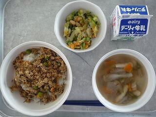 あじほぐし丼 豆の和風サラダ けんちん汁 牛乳