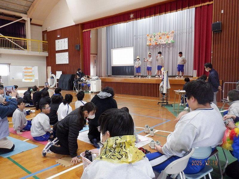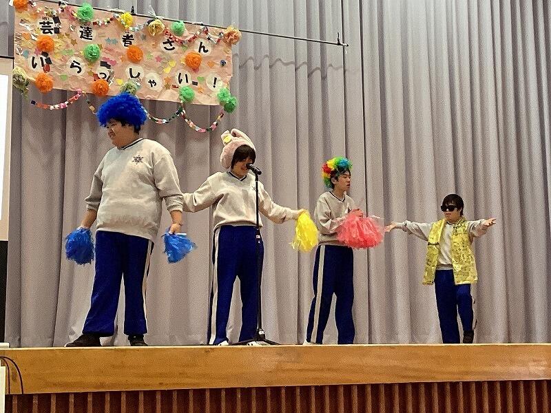 12月19日(金)に中学部の学部集会を行いました。「芸達者さんいらっしゃい!」では、歌やダンスを披露したり、それぞれの得意なことを披露したりしました。最後には、みんなでダンスを踊り中学部のみんながひとつになって盛り上がりました。