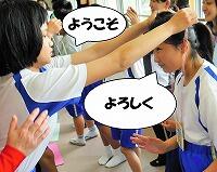 新入生は、中学部2・3年生の先輩が作ったメダルを受け取り、握手をしました。