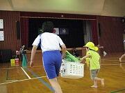当日は、保育園生と一緒に、「ジャンケン列車」やテニスボールを使った「ボールリレー」、運動会でもがんばった「野菜リレー」を通して交流を深めました。