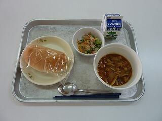 ミルクパン 牛乳 豚のトマト煮 千切り大根のサラダ