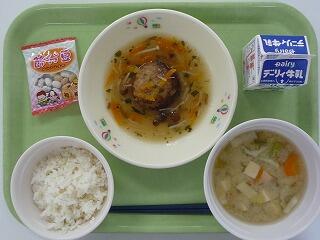 麦ご飯 和風ハンバーグ 石狩汁 節分豆 牛乳