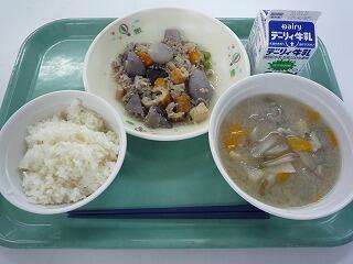 麦ご飯 里いものそぼろ煮 豚汁 牛乳