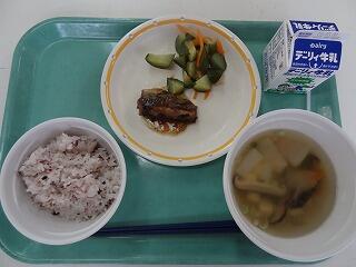 十二穀ご飯 さんま梅煮 たたききゅうり 冬瓜汁 牛乳