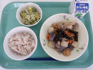 十二穀ご飯 おでん煮 ごまマヨサラダ 牛乳