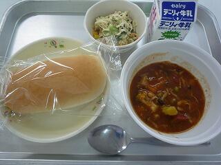 コッペパン チキンのトマト煮 千切り大根のサラダ 牛乳
