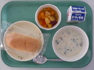 チーズパン パスタスープ フルーツカクテル 牛乳