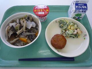 ひむか丼 しいたけのみそ汁 ごぼうサラダ 牛乳