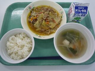 麦ご飯 マーボー春雨 にら玉スープ 牛乳