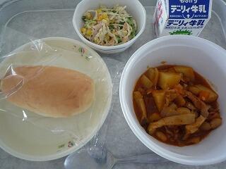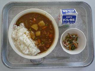 ポークカレー ハムのマリネサラダ 牛乳