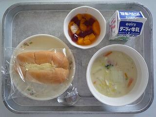 マヨネーズパン クリームシチュー フルーツカクテル 牛乳