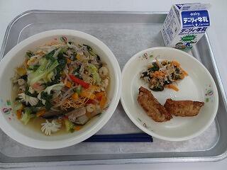 麦ご飯 牛乳 豚のしょうが炒め 春雨スープ